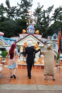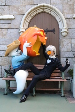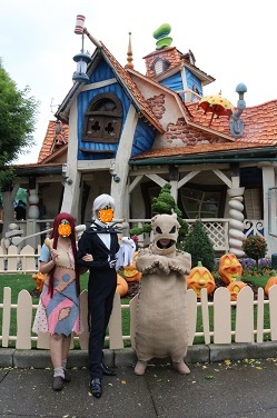 | 今回はサリー(チエホフ)の幼馴染みのえみケさんが、ウギー・ブギーで仮装参加!一緒にハロウィンを楽しみました☆ 当日は台風直撃でしたが、朝のうちに雨も上がり、昼前には晴れてきました。そしてゲストが少ない!午前中はどこも並ばずに入れました♪ |