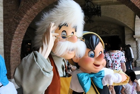 | ←↑ 広い海とプロメテウス火山を見つめるピノキオとゼペットさん。 目が輝いてる気がしました。 |