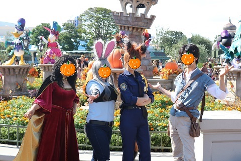 | ↑ 1年ぶりのディズニーランドハロウィンで朝一番の仮装の方と♪ 「ズートピア」好きなんです! |