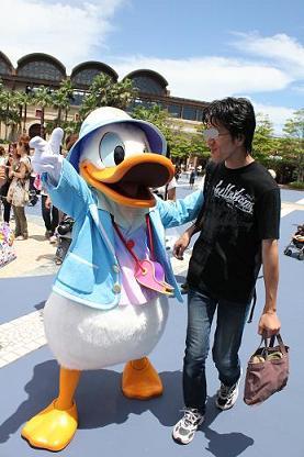 | 頭からずぶ濡れだったから「あぁ・・・」って感じのドナルド。 それでも一緒に写真を撮らせてくれました☆ 優しいドナルド。 ドナルド可愛い。 |